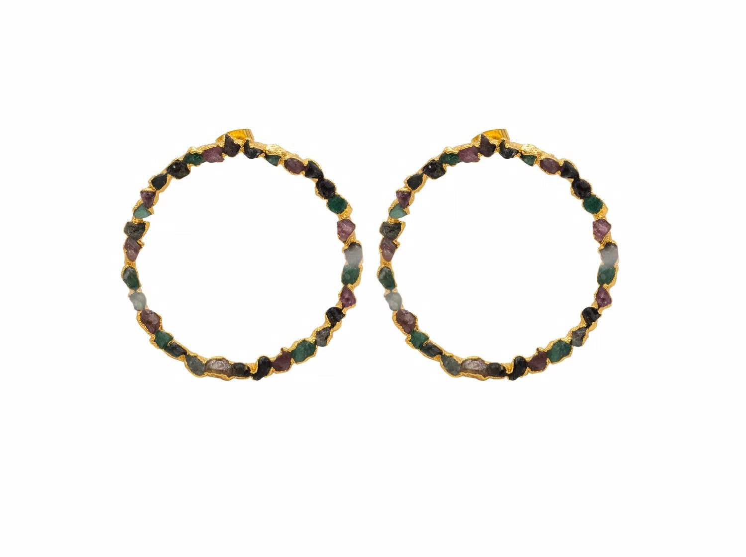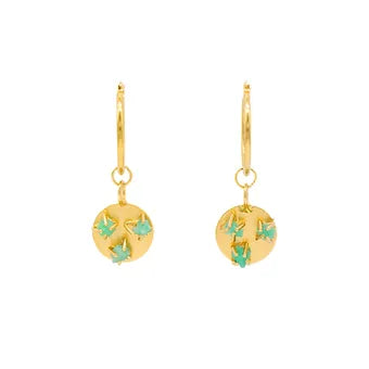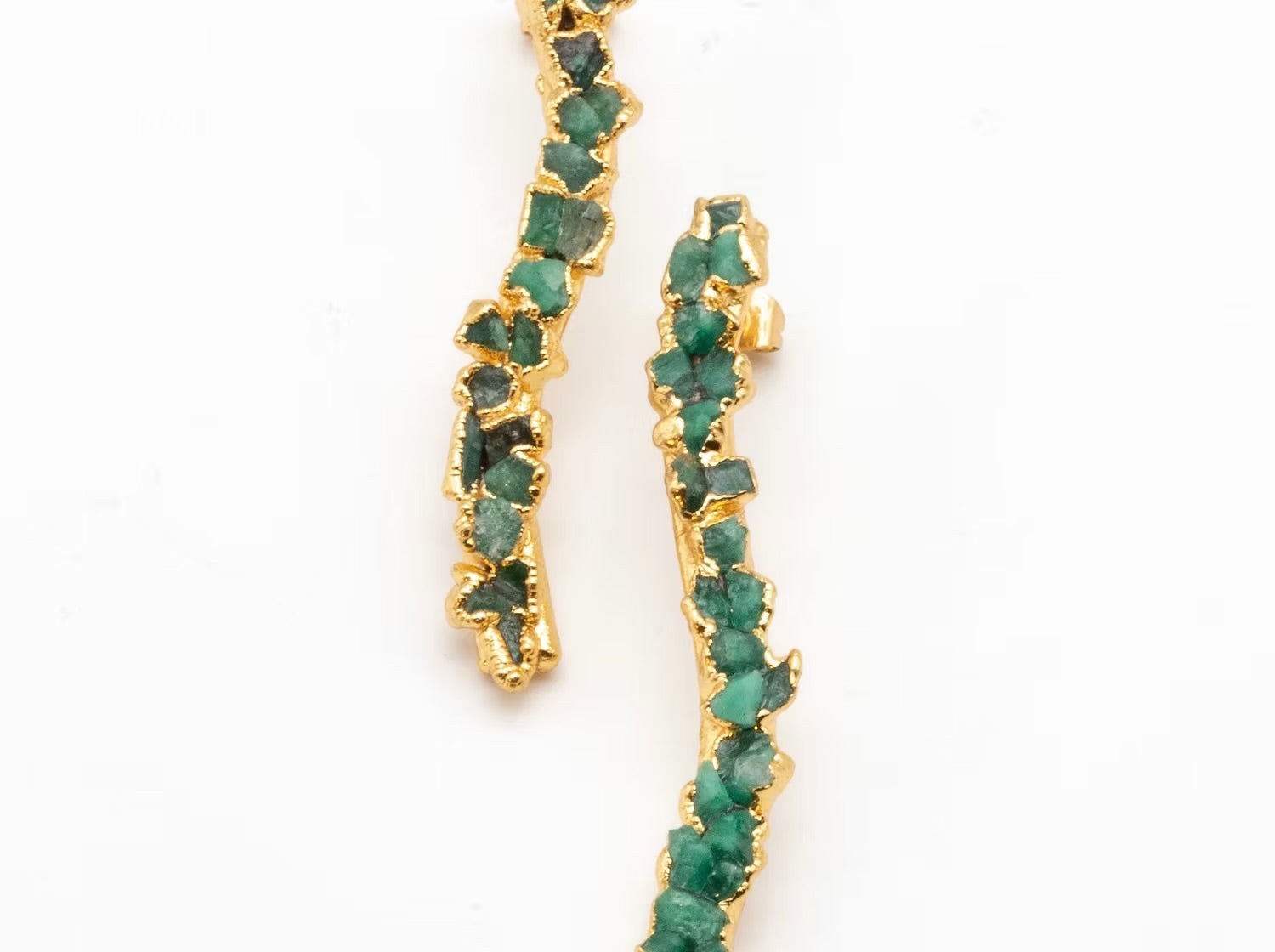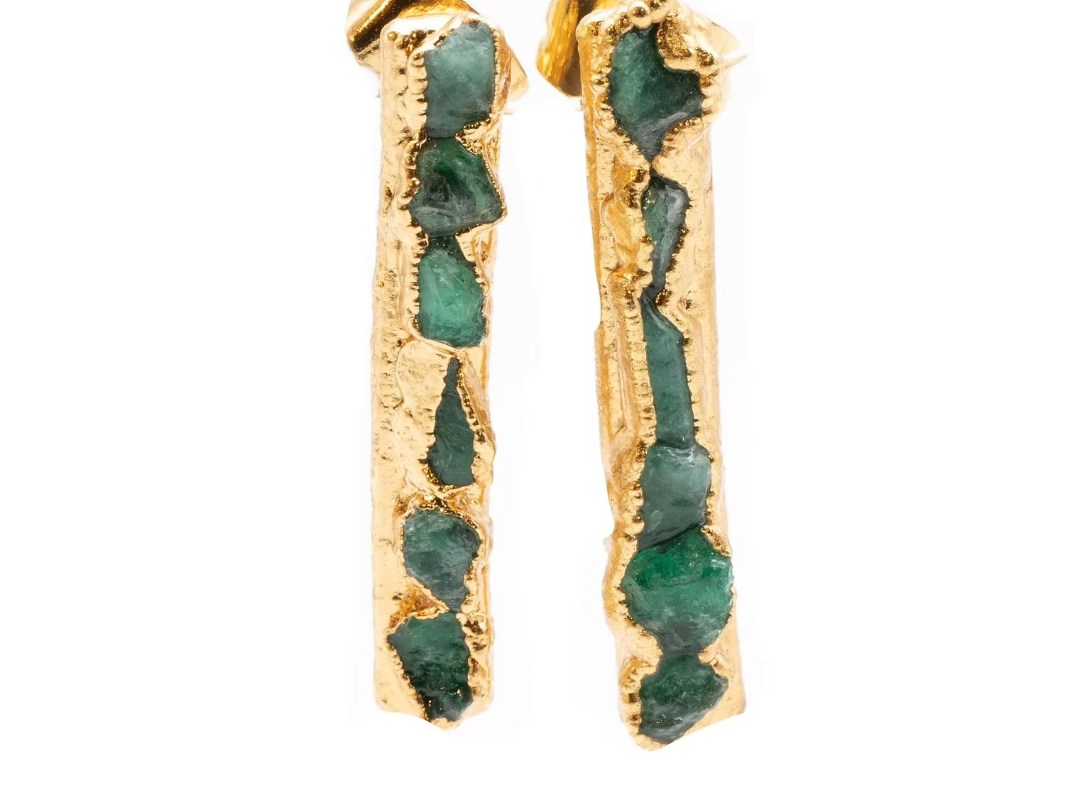 COMPRARTopos de bronce con Esmeralda bañados en oro de 24 kilates de una sola linea. Todas nuestras piezas son libres de níquel.